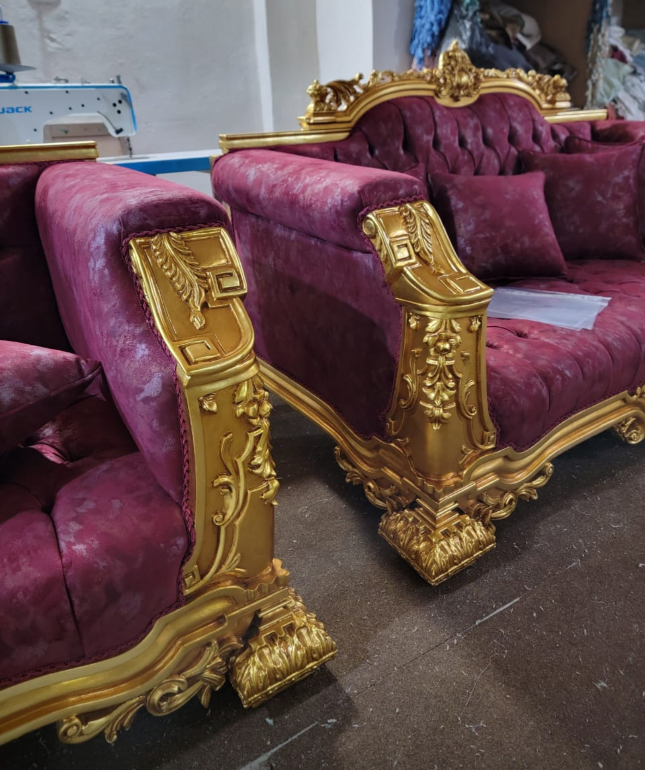 Product Details : Hand carved, Handcrafted, High Grade Velvet Upholstered.